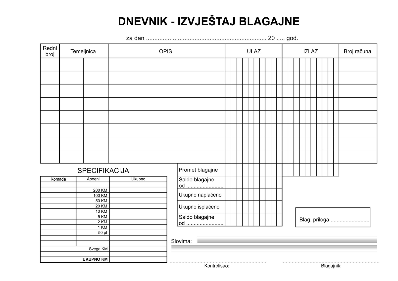 DNEVNIK – IZVJEŠTAJ BLAGAJNE