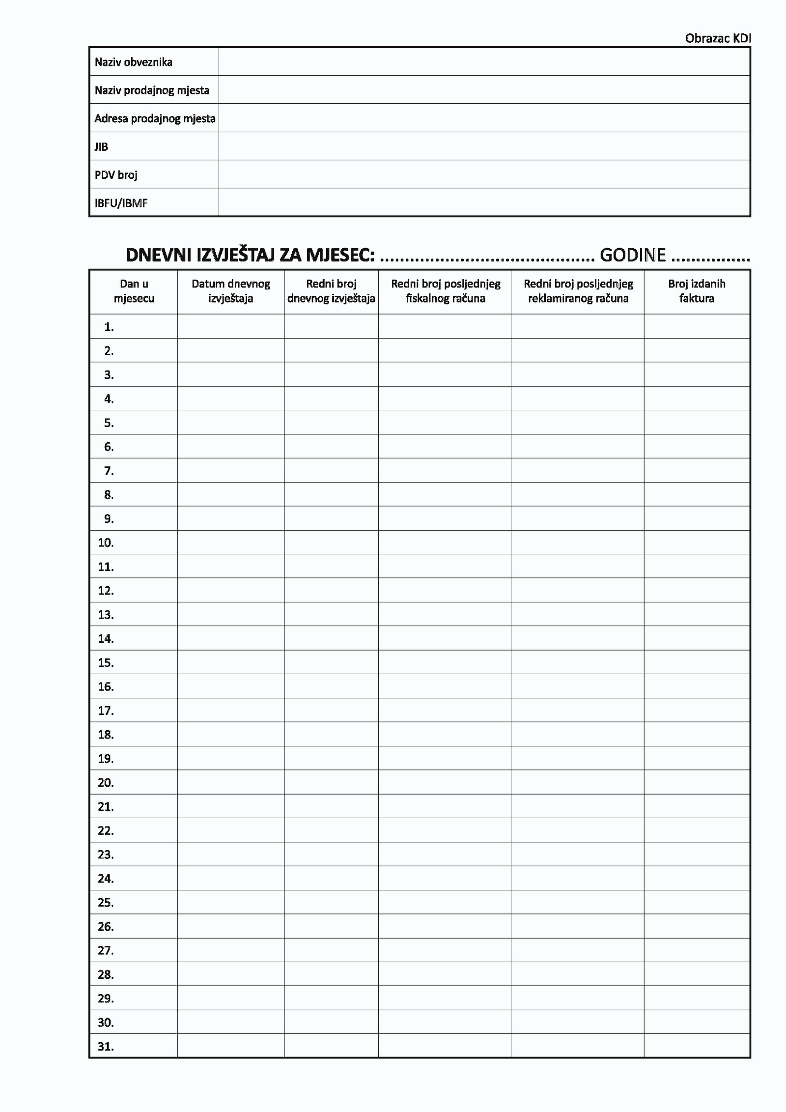 KNJIGA DNEVNIH IZVJEŠTAJA