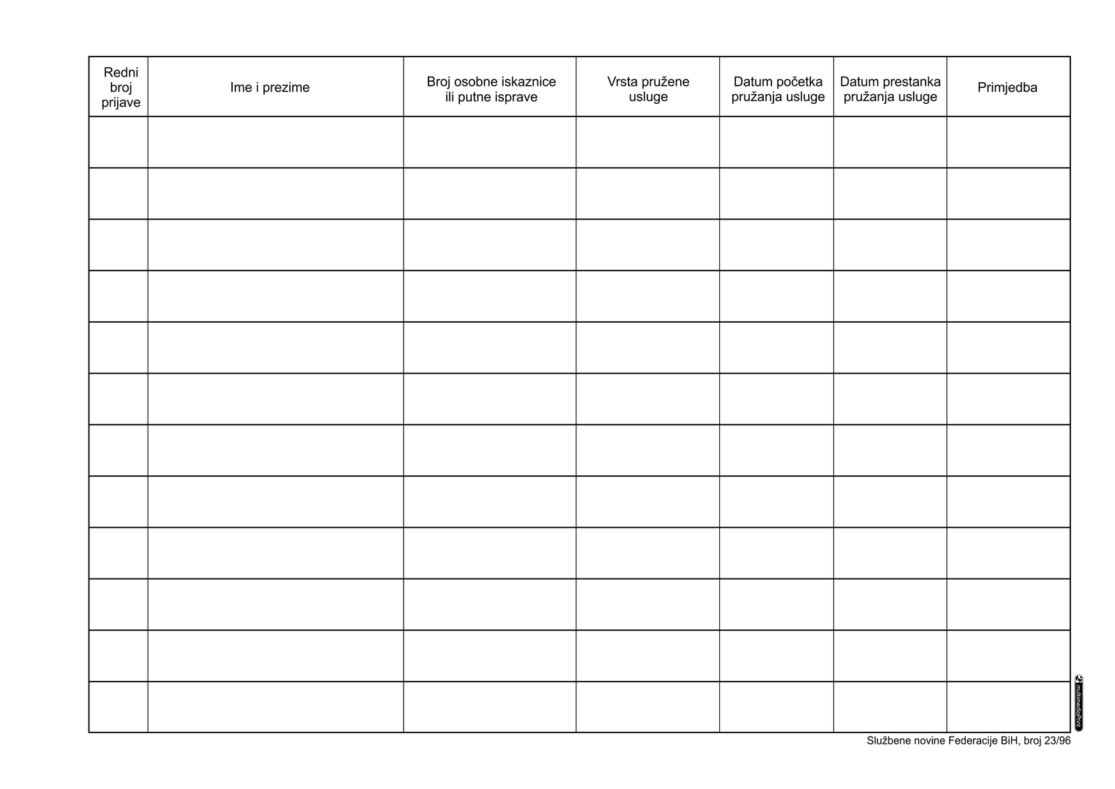 KNJIGA DNEVNIH IZVJEŠTAJA