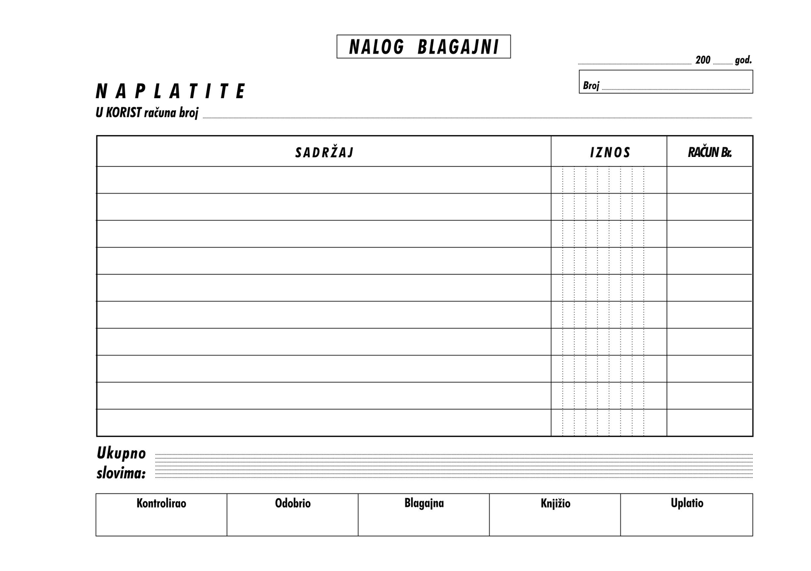 NALOG BLAGAJNI NAPLATITE