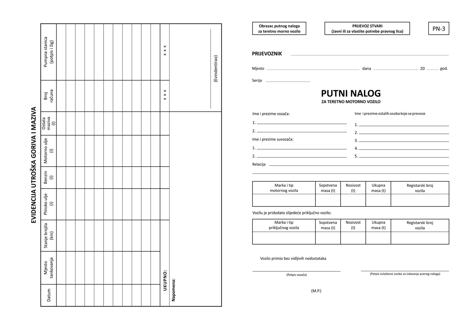 • NALOG ZA TERETNO MOTORNO VOZILO