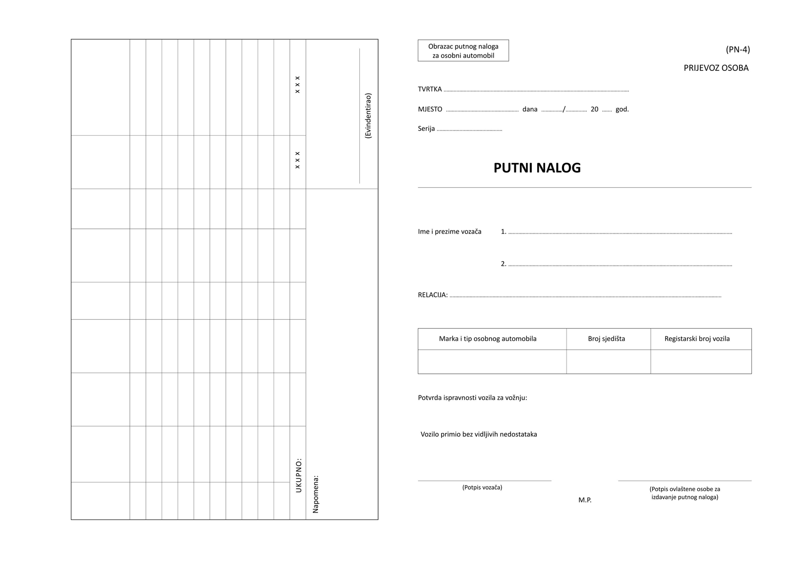 NALOG ZA PUTNIČKO MOTORNO VOZILO PN-4, NCR